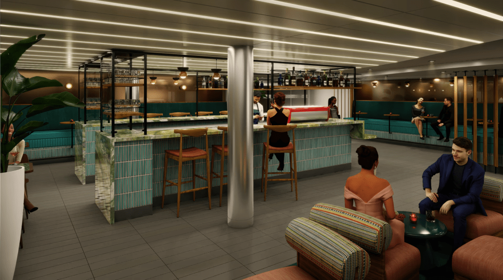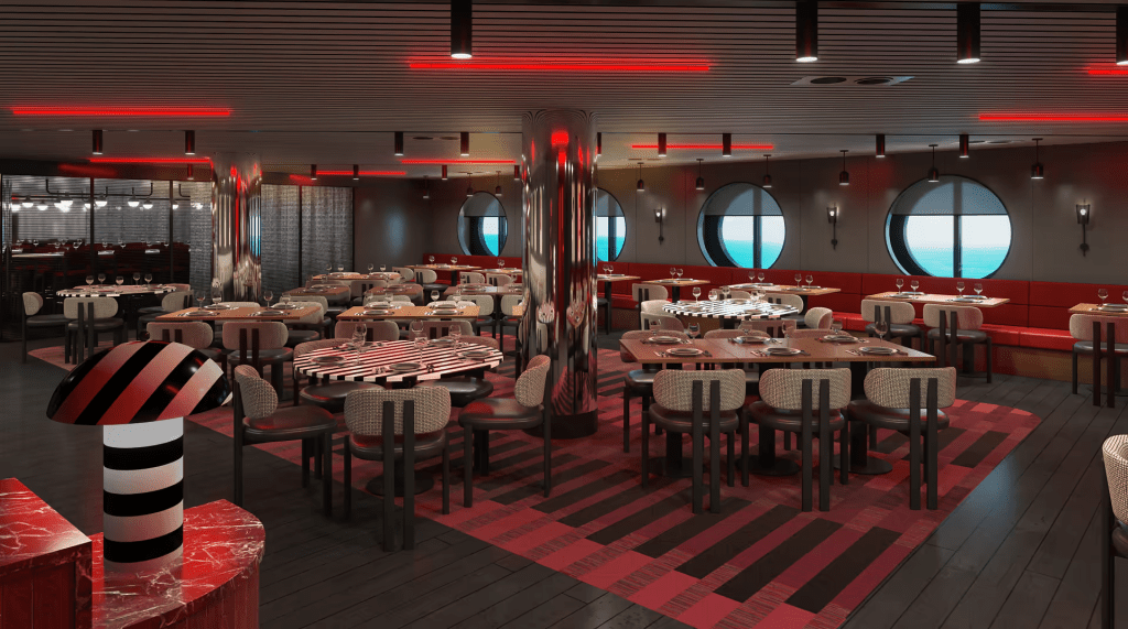 Scarlet Lady’s signature mermaid is getting a glamorous refresh, too. Think more modern, even more majestic, and every bit as fabulously Virgin Voyages. This stunning transformation will incorporate an array of vibrant colors that reflect the dynamic spirit of the sea. While intricate details will enhance the mermaid’s silhouette, making it a true showstopper. The design will seamlessly blend contemporary aesthetics with a nod to timeless nautical themes. Inviting guests to immerse themselves in an enchanting atmosphere that captures the essence of adventure and luxury. From the shimmering scales that catch the light to the captivating expression that beckons onlookers. This revitalized mermaid promises to be a breathtaking centerpiece. Worthy of admiration and a perfect representation of the Virgin Voyages brand.